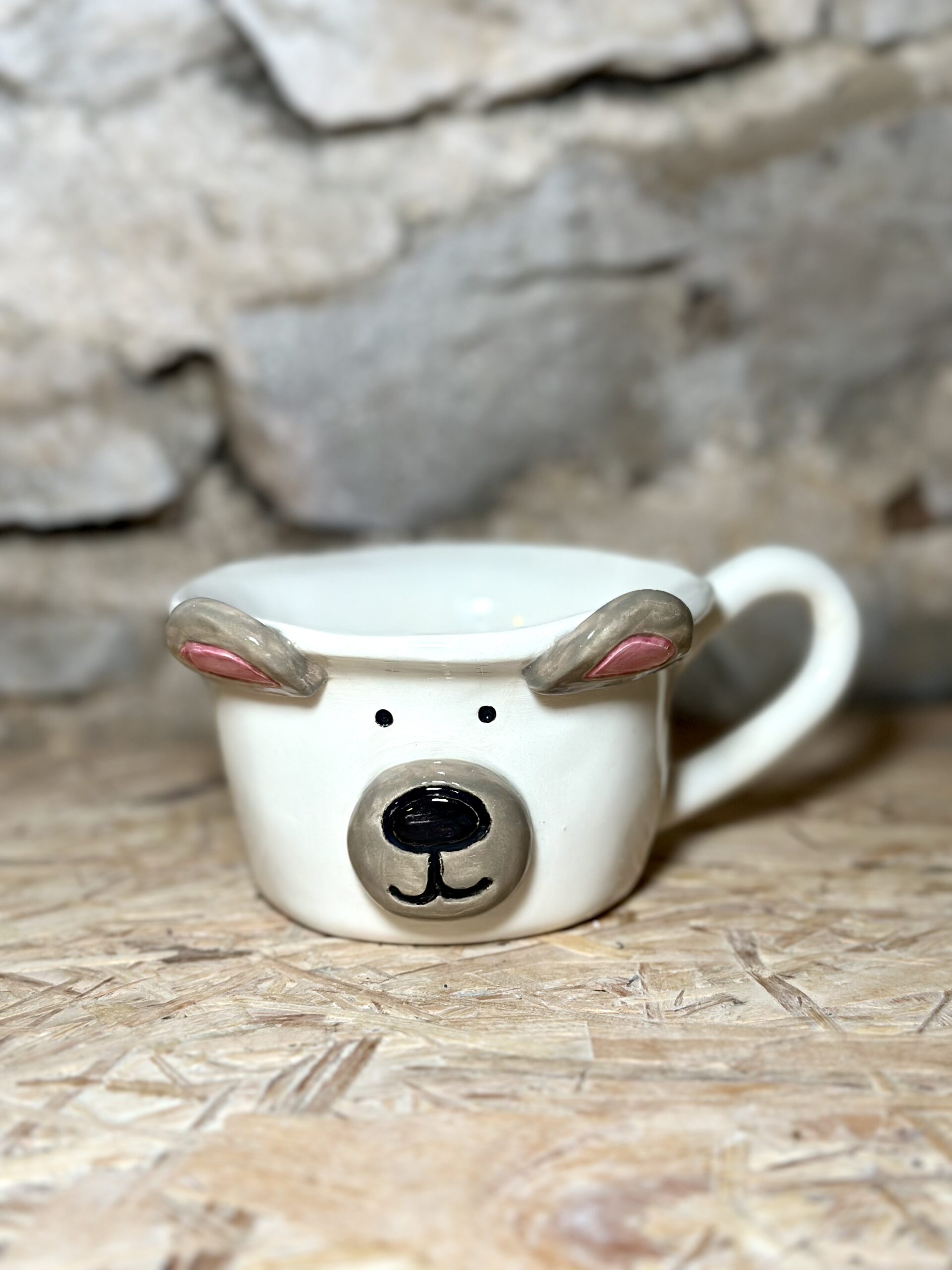 Le modelage en relief et la peinture réalisée à la main rendent chaque pièce unique, avec ses petites irrégularités qui font tout le charme de l’artisanat. Ces tasses sont pensées comme des objets de mignonnerie, réconfortants et chaleureux, qui mettent du baume au cœur dès le premier regard.